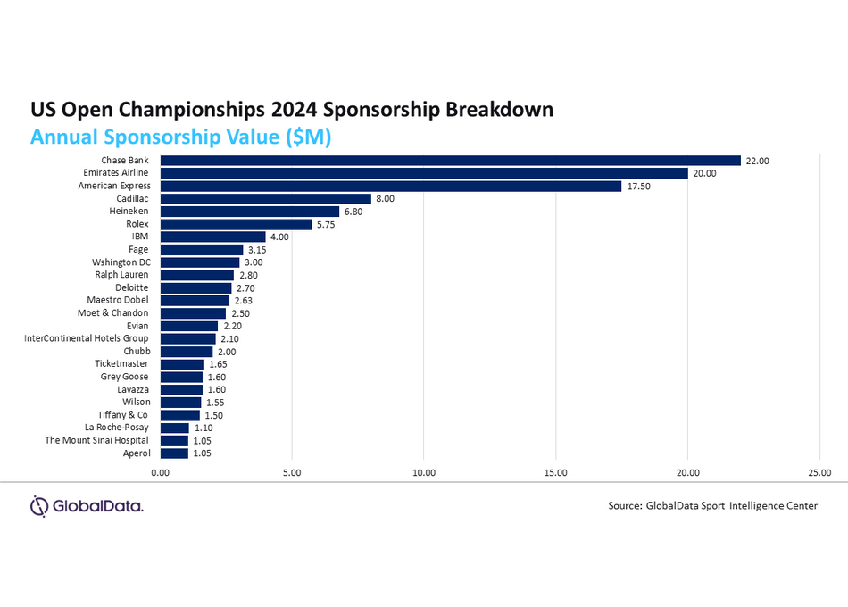 L’US Open 2024 génère des revenus de sponsoring estimés à 118,23 millions de dollars, révèle GlobalData.
