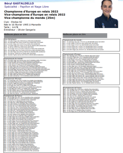 NATATION : Championnats de France de natation – Le palmarès de Béryl GASTALDELLO