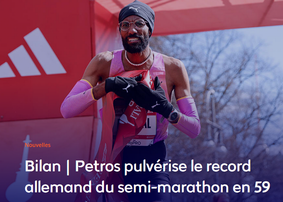 ATHLETISME : Petros pulvérise le record allemand du semi-marathon en 59 min 31 s à Berlin